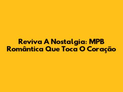 Reviva A Nostalgia: MPB Romântica Que Toca O Coração