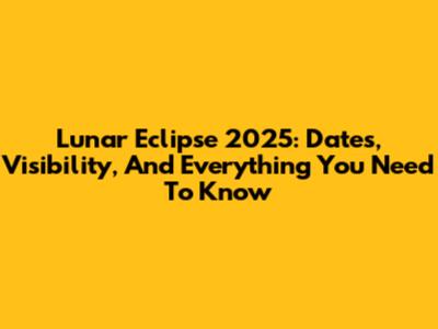 Lunar Eclipse 2025: Dates, Visibility, And Everything You Need To Know