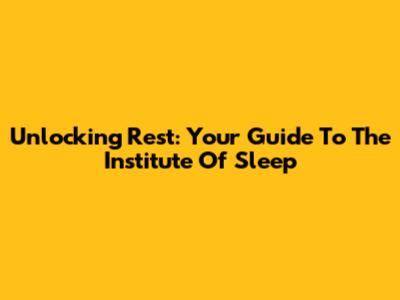 Unlocking Rest: Your Guide To The Institute Of Sleep