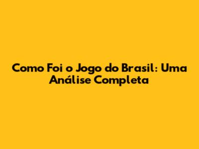 Brasil: Análise Completa E Detalhada Dos Jogos