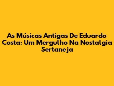 As Músicas Antigas De Eduardo Costa: Um Mergulho Na Nostalgia Sertaneja