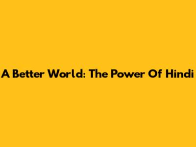 A Better World: The Power Of Hindi