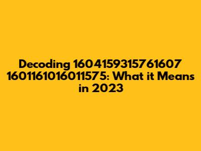 Alright guys, let's dive into this intriguing title: "1604159315761607 1601161016011575 2023." It looks like a series of numbers followed by the year 2023. Our mission? To figure out what this jumble of digits could possibly mean in the context of today. This is going to be fun!
