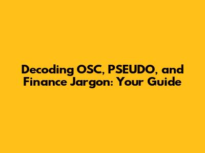 Hey everyone! Ever feel like you're drowning in a sea of acronyms and technical terms when you dive into the world of finance, especially when dealing with concepts like OSC, PSEUDO, FIRST, SC, MAC, and SCSE? Don't worry, you're not alone! Finance can be a bit of a beast, but breaking down these terms can make it way less intimidating. Think of this guide as your friendly translator, here to help you navigate the often-confusing language of the financial world. We'll explore what each of these terms means, why they matter, and how they fit into the bigger picture of finance. Get ready to level up your understanding and feel more confident when discussing financial concepts. Let's dive in and demystify these key elements! We'll start with OSC, PSEUDO, FIRST, then SC, MAC, and SCSE, finally tying it all back to how they are all linked to the world of finance.