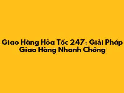 Giao Hàng Hỏa Tốc 247: Giải Pháp Giao Hàng Nhanh Chóng