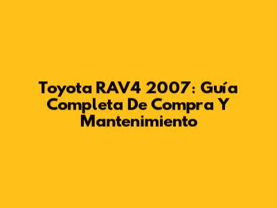 Toyota RAV4 2007: Guía Completa De Compra Y Mantenimiento