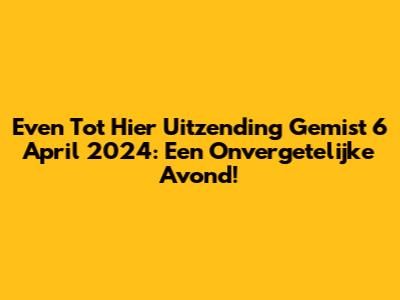 Hallo kijkers en kijksters, wat een avond was het weer op zaterdag 6 april 2024 met de nieuwste aflevering van Even Tot Hier! Heb je het gemist? Geen zorgen, want we gaan je helemaal bijpraten over deze onvergetelijke uitzending. Van hilarische momenten tot ontroerende inzichten, deze aflevering had het allemaal. Zoals altijd wisten Niels van der Laan en Jochem Myjer ons weer te verrassen met hun unieke kijk op de actualiteit, scherpe humor en natuurlijk die fantastische liedjes. Als je fan bent van dit programma, dan weet je dat je nooit teleurgesteld wordt. Elke week weer een hoogtepunt op de zaterdagavond, en ook deze keer was het weer genieten geblazen. Dus, pak je favoriete snack erbij, ga lekker zitten, en laat je meenemen in de wereld van Even Tot Hier zoals we die kennen en liefhebben. We duiken dieper in de hoogtepunten, de grappigste sketches en de meest memorabele optredens die deze specifieke aflevering zo bijzonder maakten. Bereid je voor op een dosis vermaak en reflectie, want dat is precies waar Even Tot Hier zo goed in is. We bespreken alles wat er gebeurde, van de eerste minuten tot de allerlaatste seconde, zodat je het gevoel hebt dat je er zelf bij was. En wie weet, misschien ontdek je wel iets nieuws of zie je iets dat je eerder gemist hebt. Dat is de kracht van een goede samenvatting, toch? Het brengt de magie van televisie opnieuw tot leven, speciaal voor jou. We zorgen ervoor dat je helemaal op de hoogte bent van alle ins en outs, zodat je de volgende keer weer helemaal mee kunt praten over de laatste roddels en grappen uit de studio. Dit is jouw gids voor de Even Tot Hier uitzending van 6 april 2024, een avond die je niet snel zult vergeten. Duik met ons mee in de details en herbeleef de hoogtepunten.