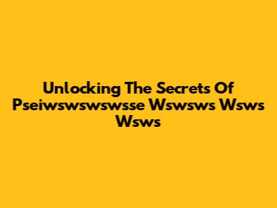 Unlocking The Secrets Of Pseiwswswswsse Wswsws Wsws Wsws