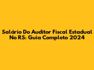 Salário Do Auditor Fiscal Estadual No RS: Guia Completo 2024