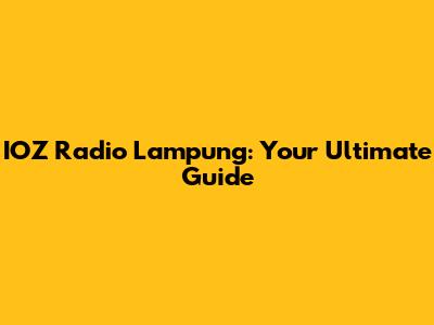 Hey everyone! Are you ready to dive into the world of IOZ Radio Lampung? If you're in Lampung, or even if you're just curious about what this radio station has to offer, you've come to the right place. We're going to explore everything you need to know, from its awesome programming to how you can tune in and stay connected. So, grab your headphones, turn up the volume, and let's get started!