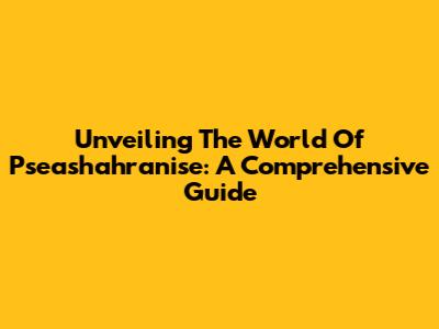 Unveiling The World Of Pseashahranise: A Comprehensive Guide