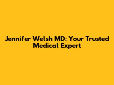 Jennifer Welsh MD: Your Trusted Medical Expert