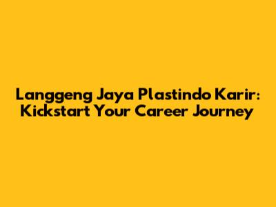 Why Choose Langgeng Jaya Plastindo for Your Career?