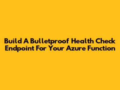 Build A Bulletproof Health Check Endpoint For Your Azure Function