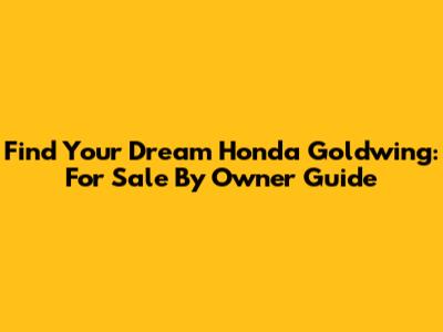 Find Your Dream Honda Goldwing: For Sale By Owner Guide