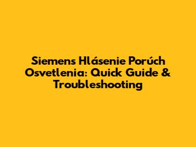 Siemens Hlásenie Porúch Osvetlenia: Quick Guide & Troubleshooting