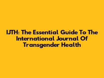 IJTH: The Essential Guide To The International Journal Of Transgender Health