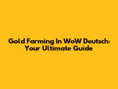 Gold Farming In WoW Deutsch: Your Ultimate Guide