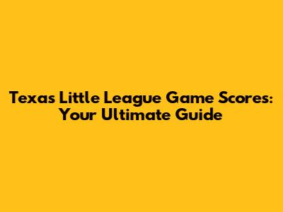 Texas Little League Game Scores: Your Ultimate Guide