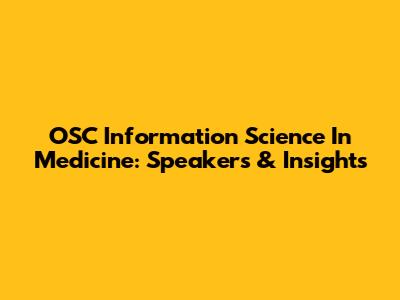 OSC Information Science In Medicine: Speakers & Insights