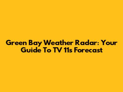 Green Bay Weather Radar: Your Guide To TV 11's Forecast