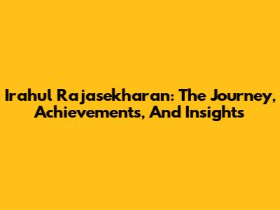 Irahul Rajasekharan: The Journey, Achievements, And Insights