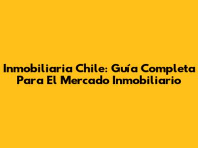 Inmobiliaria Chile: Guía Completa Para El Mercado Inmobiliario