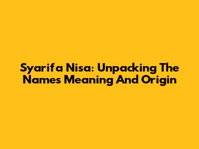 Syarifa Nisa: Unpacking The Name's Meaning And Origin