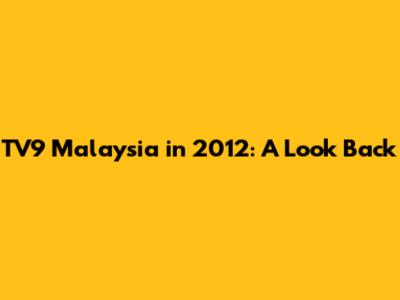 Hey guys! Let's take a trip down memory lane and revisit TV9 Malaysia in 2012. It was a pretty interesting year for the Malaysian television scene, and TV9, as one of the key players, had its own unique story to tell. If you were around and watching TV back then, you might remember some of the shows and vibes that defined TV9 during that period. This article is all about diving deep into what made TV9 tick in 2012, from its programming strategies to its impact on the audience. We'll explore the kinds of content that captured Malaysians' attention and how the channel positioned itself in a competitive market. Get ready to reminisce and maybe even discover some forgotten gems!