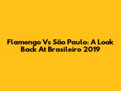 Flamengo Vs São Paulo: A Look Back At Brasileiro 2019