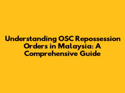 Hey guys! Ever heard of an OSC Repossession Order in Malaysia? If you're a homeowner or someone interested in property law, this is something you'll want to get the lowdown on. This comprehensive guide will break down everything you need to know about OSC repossession orders, from what they are to how they work, so you can stay informed and maybe even save yourself some headaches. Let's dive in!