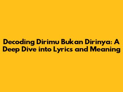 Alright, music lovers and lyric enthusiasts, let's dive headfirst into the captivating world of the song 'Dirimu Bukan Dirinya'! This Indonesian phrase translates roughly to "You Are Not Her/Him," and trust me, guys, the song packs a punch. It's not just a catchy tune; it's a journey into the complexities of relationships, identity, and the struggle to move on. We're going to unpack the lyrics, explore the meaning behind the words, and discuss the impact this song has had on listeners. Buckle up, because we're about to embark on a musical adventure!
