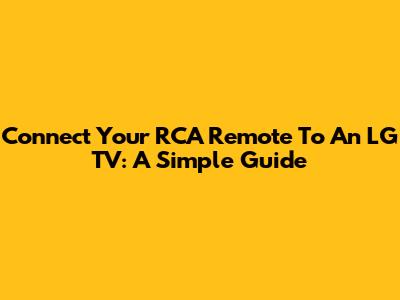 Connect Your RCA Remote To An LG TV: A Simple Guide