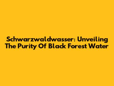 Schwarzwaldwasser: Unveiling The Purity Of Black Forest Water